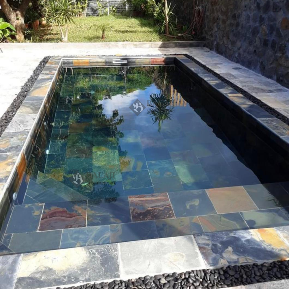 Jak Multi Slate Stone is also known as Jakrana Multi Slate Stone. It is the most popular multi colors slate with a Black base from India. They are widely used for walls and floors. Jak Multi Slate Tiles bring depth to your interiors and exteriors.