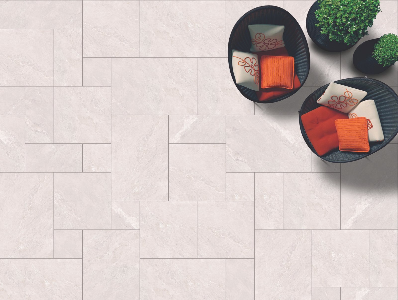 Mountain White Porcelain is most popular for its stunning white full colour body and anti-slip grip R11. This is a 20 mm Outdoor Porcelain suitable for Patios, Gardens, and Pavements.